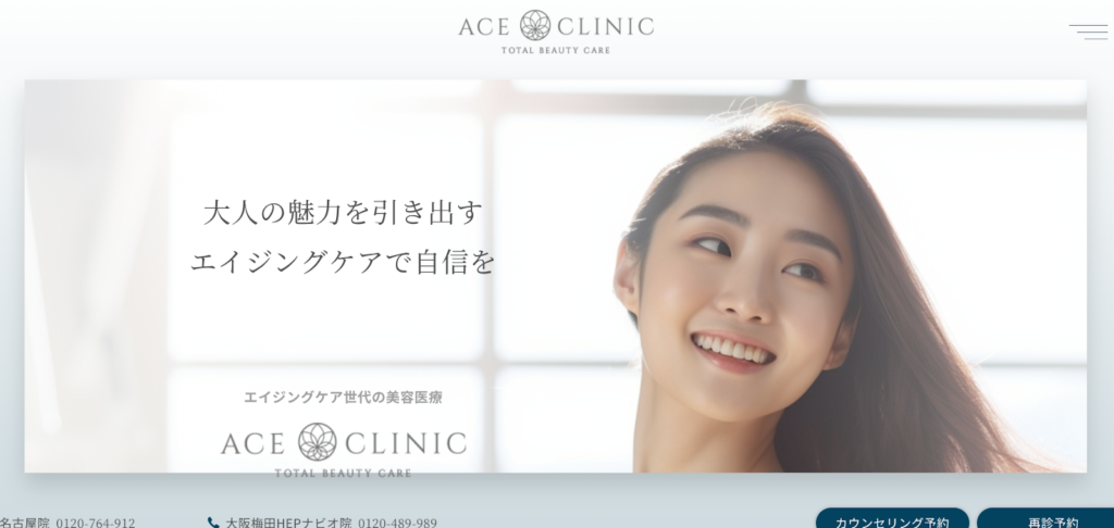 エースクリニックは、名古屋駅近くにあるエイジングケアに特化した美容クリニックで、ダーマペン4による毛穴・ニキビ跡治療に力を入れています。