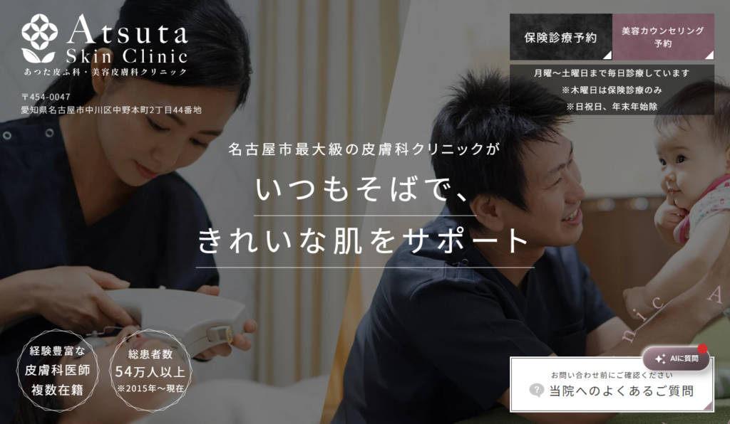 あつた皮ふ科・美容皮膚科クリニックは、日本皮膚科学会専門医の佐々木院長が、地域密着型の医療を提供しているクリニックです。
