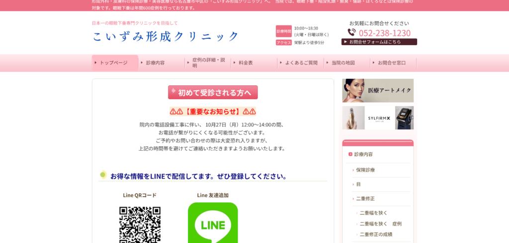 眼瞼下垂の診察・治療は、眼科・形成外科・美容外科いずれかで受けられます。視界障害や機能低下がある場合は保険診療対応の眼科や形成外科を、見た目(整容面)も重視したい場合は美容外科を選ぶケースが多いです。例えば、名古屋の「名古屋アイクリニック」は眼科専門医が診察を行い手術も行なっています。